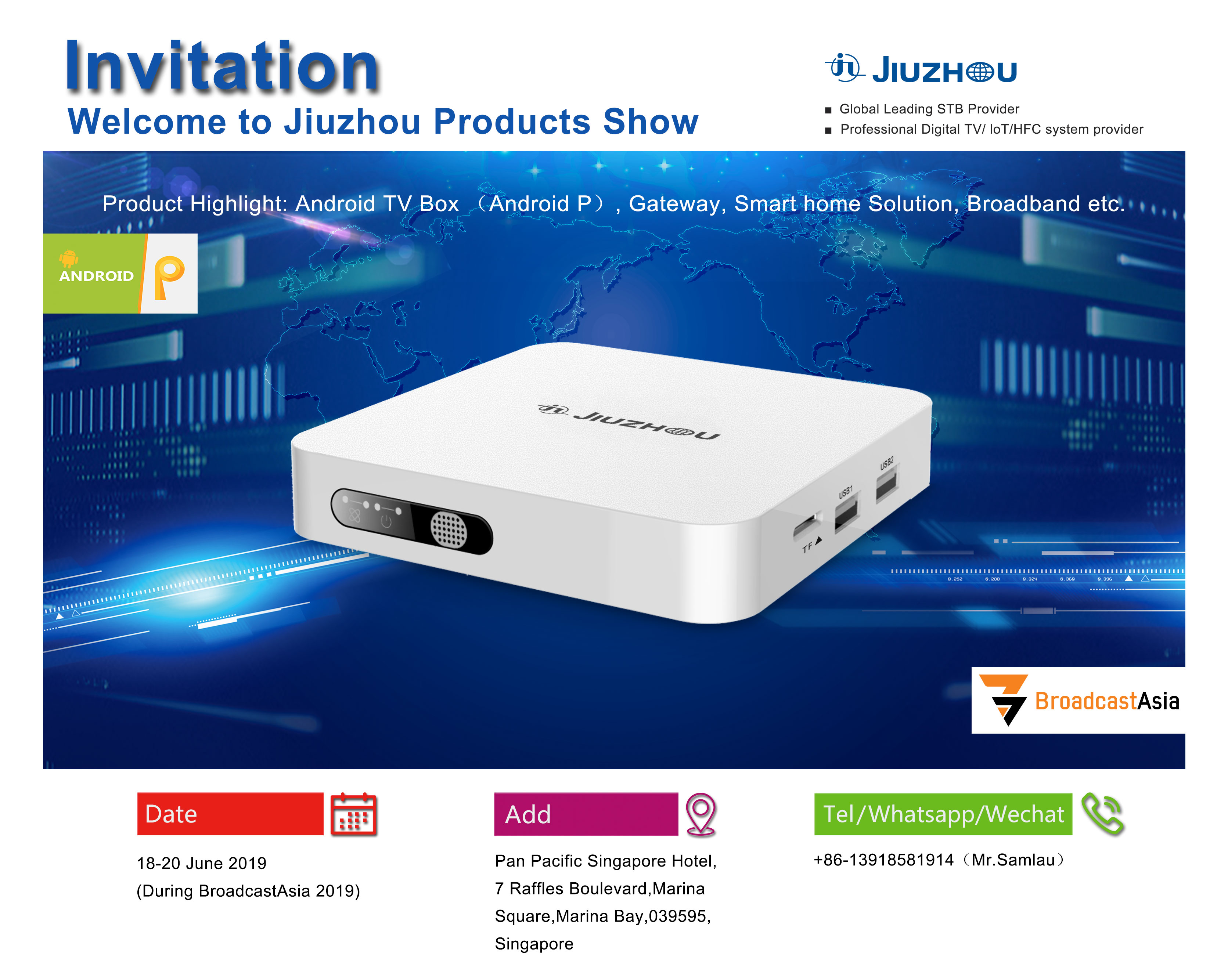 深圳市九洲電器有限公司產(chǎn)品推介會(huì)將于2019年6月18-20日在新加坡泛太平洋酒店舉行。本次產(chǎn)品推介會(huì)將重點(diǎn)推出Android TV Box (Android P), Gateway, Smart home Solution, Broadband等產(chǎn)品,歡迎各界人士蒞臨洽談!