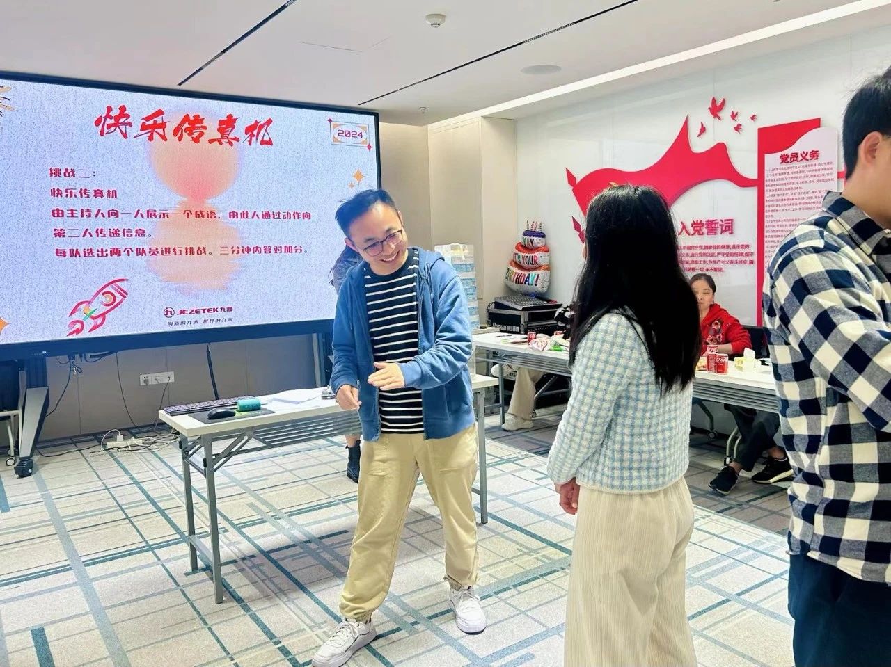 到了緊張刺激、歡樂(lè)不斷的共創(chuàng)環(huán)節(jié),壽星們分成了“新文化”和“新訂單”兩個(gè)隊(duì)伍,挑戰(zhàn)了“新年啟新聲”、“愛(ài)拼才會(huì)贏”、“快樂(lè)傳真機(jī)”三個(gè)小游戲。不僅考驗(yàn)集體反應(yīng)能力,還考驗(yàn)大家的團(tuán)隊(duì)配合,讓大家在游戲中感悟凝心聚力的重要性。